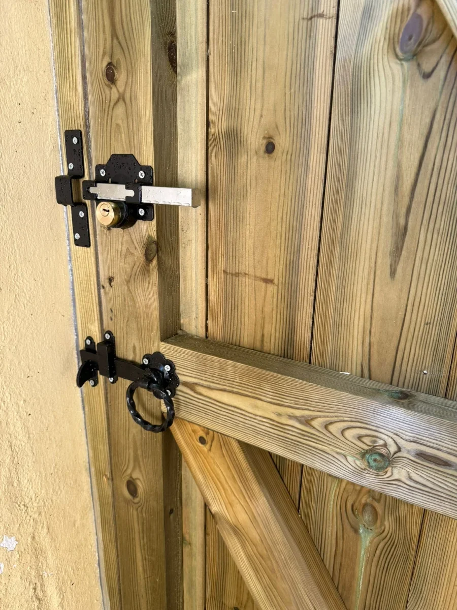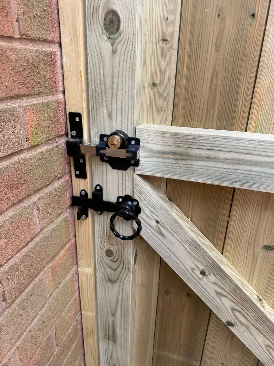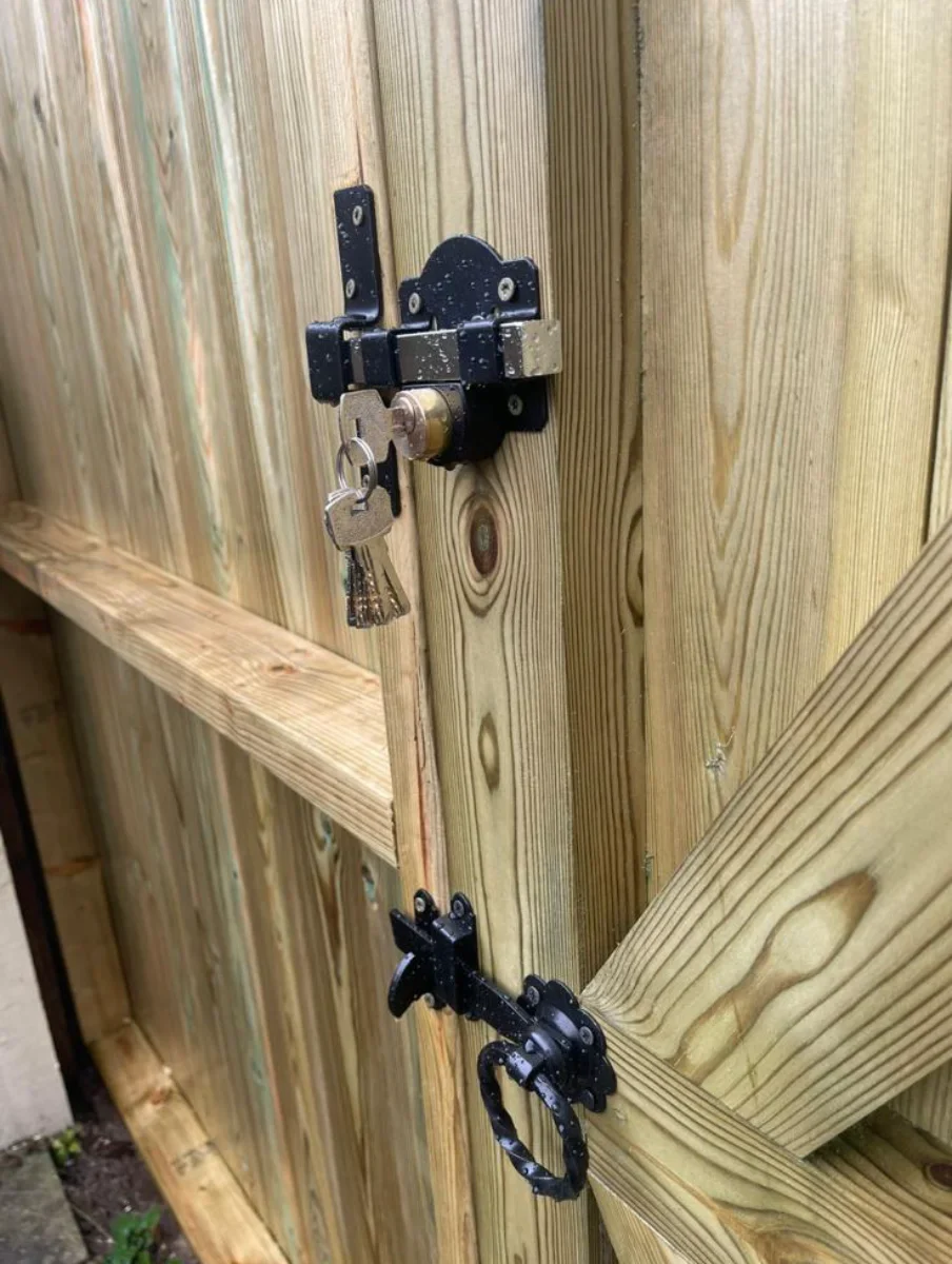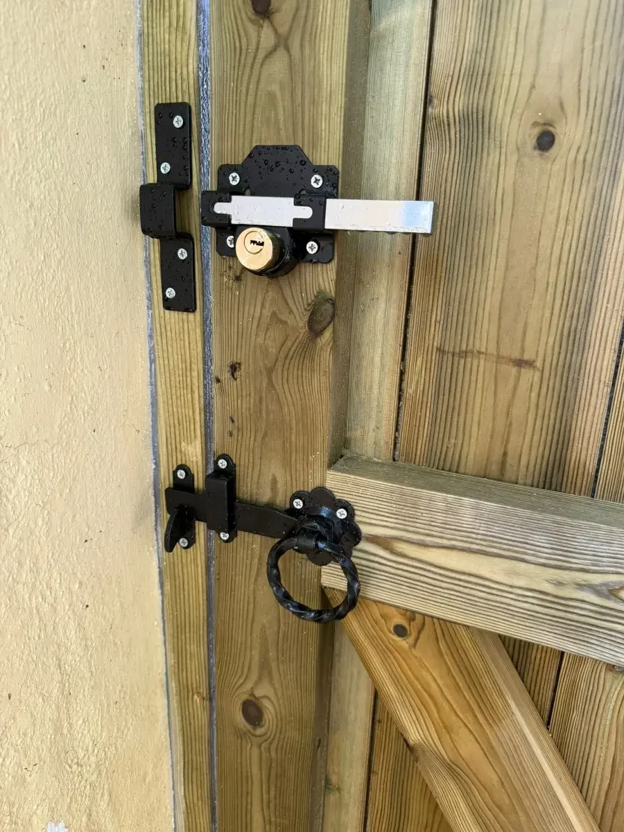 2 lockable barrel bolts are fitted to all gates which are very strong and secure and are each capable of having padlocks.